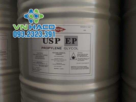 Hóa chất Propylene Glycol – PG U hiện đang có sẵn tại HACOCHEM với quy cách 215kg/phuy, sản phẩm được sử dụng rộng rãi trong các ngành sản xuất thực phẩm, mỹ phẩm , sản xuất sơn, keo, nhựa polymer,… Sản phẩm được chúng tôi phân phối số lượng lớn phục vụ trong sản xuất công nghiệp.